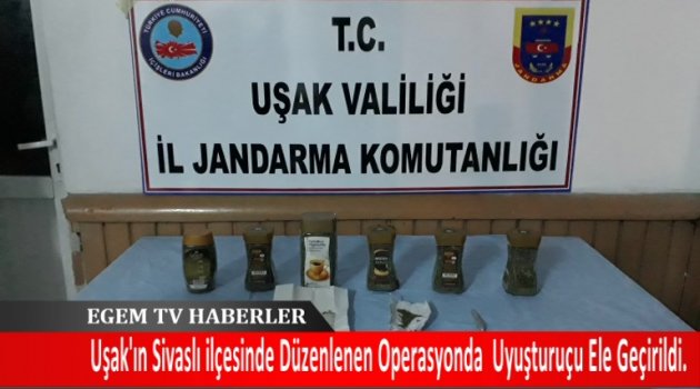 Uşak'ın Sivaslı ilçesinde düzenlenen operasyonda 413 gram esrar ele geçirildi.Tatar beldesinde B.K'ye (56) ait evde uyuşturucu madde ticareti yapıldığı yönünde ihbar alan jandarma ekipleri eve baskın düzenledi.Evde arama yapan ekipler, bahçede iki farklı noktaya gömülü 6 kavanoz içinde 413 gram esrar ele geçirdi.Gözaltına alınan B.K, Sivaslı İlçe Jandarma Komutanlığı'na götürüldü.