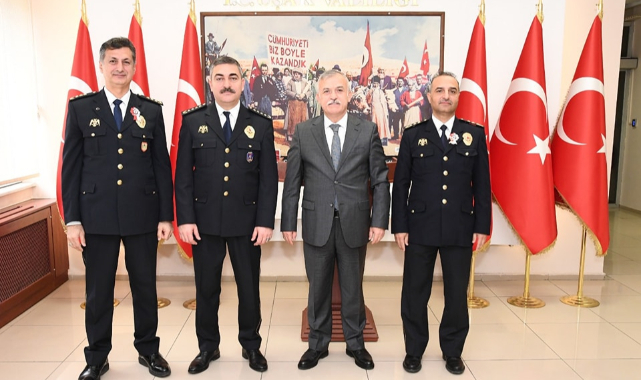 Vali Vekili Muammer Balcı, Emniyet Teşkilatının 178. Kuruluş Yıldönümü ve Polis Haftası kapsamında Uşak İl Emniyet Müdürü Ayhan KARADUMAN ile beraberindeki heyeti kabul etti.