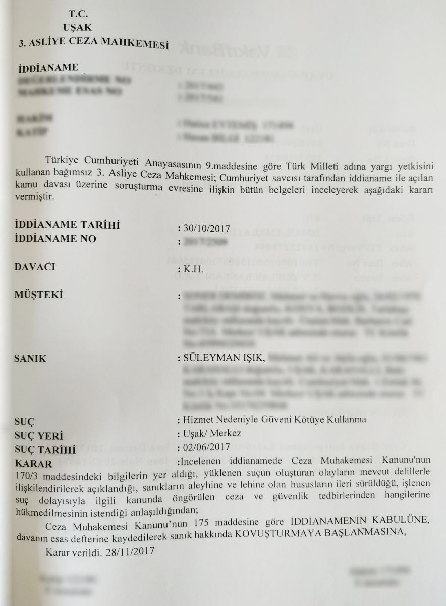 Süleyman IŞIK’ın yaşadığı bu olay ve yargılandığı dava mükellefin şikâyeti üzerine, Uşak Cumhuriyet Başsavcılığı ve uşak emniyetince sorgulanarak savcılık iddianamesi ile